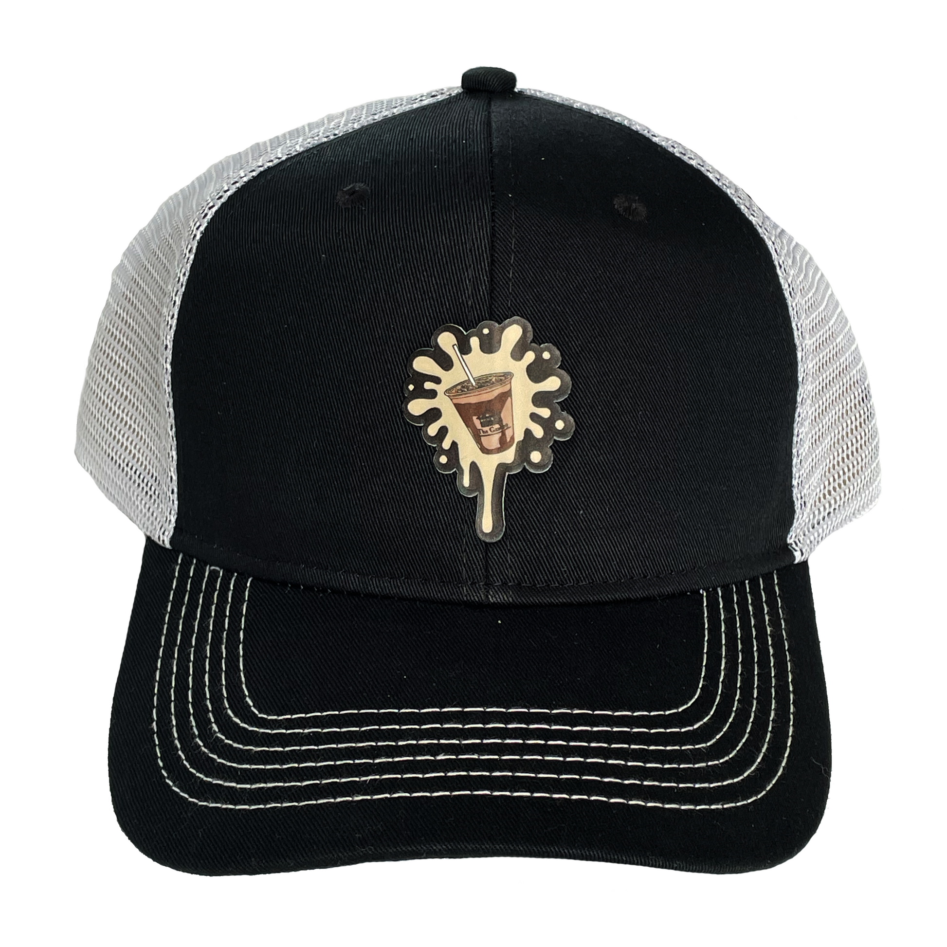 Mudplop Patch on front of Black Hat - white mesh back